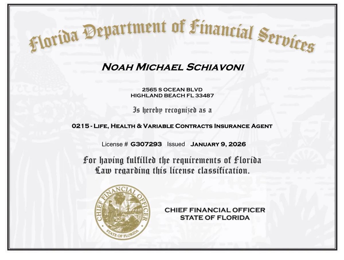 Hello, I am Noah Schiavoni, a 2-15 licensed insurance agent in the sunny state of Florida!